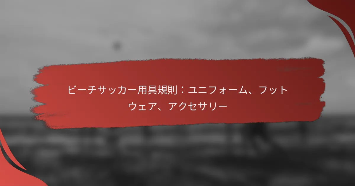 ビーチサッカーの用具は、プロフェッショナルな外観と選手の安全を確保するために、ユニフォーム、フットウェア、およびアクセサリーに関する特定のルールによって管理されています。ユニフォームはデザインとブランディングに関する規則に従う必要があり、フットウェアの選択肢は専門的な靴と裸足のプレーの間で異なる場合があります。さらに、選手はパフォーマンスを向上させる特定のアクセサリーを着用することが許可されていますが、公平なプレーを維持するために安全基準を遵守する必要があります。