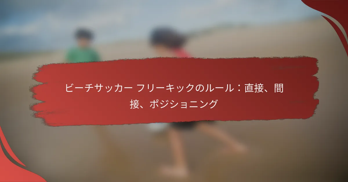 ビーチサッカーでは、フリーキックは直接フリーキックと間接フリーキックの2種類に分類され、それぞれ実行に関する異なるルールがあります。これらのルールを理解し、戦略的なポジショニングの重要性を認識することは、選手やコーチが得点チャンスを最適化し、試合中の守備戦略を強化するために不可欠です。