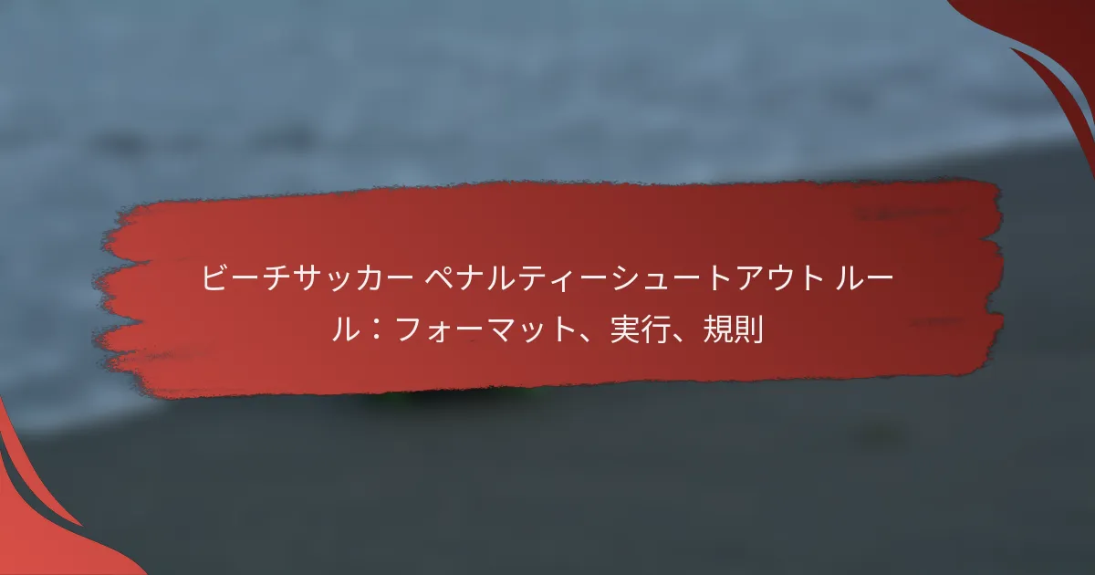 ビーチサッカーのルールは、特にペナルティーシュートアウトの文脈において、伝統的なサッカーとは大きく異なります。ビーチサッカーでは、シュートアウトの形式がよりシンプルで、チーム戦略よりも個々の選手のパフォーマンスに焦点を当てています。