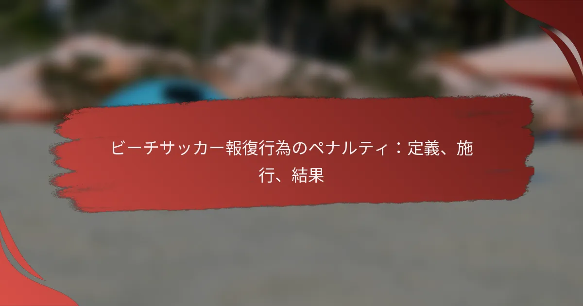 ビーチサッカーにおける報復行為は、選手が認識したファウルや挑発に対して攻撃的に反応する際に発生し、しばしば身体的接触やスポーツマンシップに反する行動を引き起こします。このような行為は、フェアプレーと規律を維持するために施行されるイエローカードやレッドカードなどの重大な罰則につながる可能性があります。これらの行為の施行メカニズムと結果を理解することは、ゲームの整合性を維持し、選手に受け入れられる行動について教育するために不可欠です。 ビーチサッカーにおける報復行為とは何ですか? ビーチサッカーにおける報復行為は、選手が相手からの認識されたファウルや挑発に対して攻撃的に反応することを指します。これらの行為は、身体的接触やスポーツマンシップに反する行動を伴うことが多く、ゲームに大きな影響を与える罰則につながる可能性があります。 報復行為の定義 報復行為は、相手のファウルや攻撃的なプレーに対する意図的な反応であり、害を与えたり不当なアドバンテージを得たりすることを目的としています。これらは、ボールをプレーするのではなく、挑発に反応する意図を特徴としています。具体的には、相手を押す、蹴る、または口頭での侮辱を行うことが含まれます。 ビーチサッカーでは、これらの行為はスポーツのルールに厳しく規制されており、フェアプレーとスポーツマンシップを強調しています。報復行為に関与していると判断された選手は、行為の重大性に応じてイエローカードやレッドカードなどの懲戒処分を受ける可能性があります。 一般的な報復行為の例 ファウルの後に相手を押したり押し返したりすること。 フラストレーションから相手に向かってボールを蹴ること。 反応を引き起こすことを目的とした口頭での侮辱や挑発。 復讐の一環として意図的に相手をつまずかせること。 これらの例は、試合中に報復行為がどのように現れるかを示しています。選手は自分が不当な扱いを受けたと感じたときに反応せざるを得ないと感じることがありますが、そのような反応はしばしばフィールド上の緊張を高めます。 報復行為に影響を与える文脈的要因 ビーチサッカーにおける報復行為が発生する可能性に影響を与える要因はいくつかあります。試合の激しさ、関与する利害、審判の行動などが役割を果たします。たとえば、高圧的な状況では、選手が認識された不正に対して衝動的に行動することがあります。 さらに、観客の支持や敵意の存在も選手の行動に影響を与える可能性があります。大声の観客は選手をより攻撃的に報復させることを促すかもしれませんが、支持的な雰囲気は自制心やスポーツマンシップを促すかもしれません。 報復行為と通常のファウルの違い 報復行為は、主にその意図において通常のファウルとは異なります。通常のファウルはしばしば意図しないもので、プレーの自然な流れの中で発生しますが、報復行為は他の選手の行動に対する計画的な反応です。この区別は、罰則を評価する際に審判にとって重要です。 さらに、報復行為の結果は通常より厳しいです。通常のファウルはフリーキックやイエローカードをもたらすことがありますが、報復行為は直接のレッドカード、出場停止、または罰金につながる可能性があり、フェアプレーを維持するためのスポーツのコミットメントを反映しています。 ビーチサッカーにおける報復行為に関連する罰則は何ですか? ビーチサッカーでは、報復行為は主にイエローカードやレッドカードの形で重大な罰則につながる可能性があります。これらの罰則は、選手間のフェアプレーと規律を維持するために施行され、行為の重大性に応じた具体的な結果があります。 罰則の種類:イエローカードとレッドカード イエローカードは、軽微な報復行為を含むスポーツマンシップに反する行動への警告として機能します。試合中に2枚のイエローカードを受けた選手はレッドカードを提示され、試合から退場させられます。 レッドカードは、暴力的な行動や重大なファウルプレーなど、より深刻な違反を示します。レッドカードを提示された選手は直ちにフィールドを離れなければならず、交代することはできず、チームは数的劣位に置かれます。 イエローカードとレッドカードの両方は、選手の懲戒記録に影響を与え、特に時間の経過とともに複数の罰則を累積した場合、今後の試合への出場資格に影響を与える可能性があります。 行為の種類に基づく罰則の厳しさ ビーチサッカーにおける罰則の厳しさは、報復行為の性質に基づいて異なります。たとえば、軽い押しはイエローカードに値するかもしれませんが、パンチやキックは即座にレッドカードにつながる可能性があります。 審判は、罰則を決定する際に行為の文脈と影響を評価します。計画的または過度に攻撃的と見なされる行為は、通常、より厳しい罰則をもたらし、選手の安全を保護し、スポーツの整合性を維