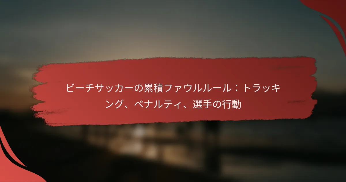 ビーチサッカーにおける累積ファウルは、試合のダイナミクスにおいて重要な役割を果たし、結果に影響を与えるペナルティにつながる可能性があります。レフェリーやスコアキーパーによるこれらのファウルの適切な追跡は、公正なプレーを確保し、選手の行動を守るために不可欠です。チームは、フリーキックや選手の退場を含む厳しいペナルティを避けるために、ファウルの管理に注意を払う必要があります。 ビーチサッカーにおける累積ファウルのルールは何ですか? ビーチサッカーにおける累積ファウルとは、試合中にチームが犯したファウルの総数を指し、ペナルティにつながる可能性があります。これらのルールを理解することは、選手やコーチがフィールド上での規律と戦略を維持するために重要です。 ビーチサッカーにおけるファウルの定義 ビーチサッカーにおけるファウルは、試合のルールに違反する行為として定義され、相手チームにフリーキックが与えられます。一般的なファウルには、つまずき、押し、相手を保持すること、またはスポーツマンシップに反する行動が含まれます。レフェリーはファウルの重大性と適切なペナルティを判断する裁量を持っています。 ファウルは軽微な違反と重大な違反に分類され、重大なファウルは通常、直接フリーキックにつながります。選手は、軽微なファウルを繰り返すことで累積し、ペナルティキックなどのより厳しい結果につながる可能性があることを認識しておく必要があります。 累積ファウルの基準 累積ファウルは試合中に追跡され、チームが犯した各ファウルが総数に加算されます。チームが通常約5回の累積ファウルに達すると、相手チームに指定された地点から直接フリーキックが与えられます。このルールは、チームがより公正かつ戦略的にプレーすることを促進します。 各ファウルは、犯した選手に関係なくチームの総数にカウントされます。 しきい値に達すると、相手チームがフリーキックの恩恵を受けます。 レフェリーは、試合中の正確な追跡を確保するためにファウルの記録を保持します。 従来のサッカーのファウルルールとの違い ビーチサッカーは、ファウルルールに関して従来のサッカーとは明確な違いがあります。従来のサッカーでは、ファウルがイエローカードやレッドカードにつながる可能性がありますが、ビーチサッカーでは、主に累積ファウルとそれがフリーキックに与える直接的な影響に焦点が当てられています。この違いは、より流動的でスピード感のあるゲームを強調しています。 さらに、ビーチサッカーにおける累積ファウルのしきい値は、従来のサッカーよりも通常低く、これによりフリーキックがより頻繁に発生する可能性があります。これにより、チームは攻撃的なプレーを避け、よりスキルフルなアプローチを促進します。 異なるレベルのプレーにおけるルールのニュアンス 累積ファウルに関するルールは、アマチュアリーグとプロリーグなど、プレーのレベルによって異なる場合があります。プロの環境では、レフェリーは試合の整合性を維持するために、累積ファウルに対して厳しいペナルティを適用することがあります。逆に、アマチュアリーグでは、参加と楽しみを促進するために、より寛容な解釈を採用することがあります。 選手は、試合中の驚きを避けるために、自分のリーグの特定のルールに慣れておくべきです。これらのニュアンスを理解することで、チームは地域のトーナメントやプロのイベントで競技する際に戦略を調整するのに役立ちます。 ファウルに関する一般的な誤解 一般的な誤解の一つは、すべてのファウルが即座にペナルティにつながるということです。ビーチサッカーでは、累積ファウルのみが相手チームへの直接フリーキックにつながり、すべての個別のファウルがそうなるわけではありません。これにより、選手はすべての違反に対してペナルティを期待するかもしれず、混乱を招く可能性があります。 もう一つの誤解は、ファウルが個々の選手に対してのみカウントされるということです。実際には、重要なのはチームの総累積ファウルであり、選手はファウルのしきい値に達しないように協力する必要があります。これらの側面を理解することで、選手は試合中により良いコントロールを維持することができます。 ビーチサッカーの試合中にファウルはどのように追跡されますか? ビーチサッカーにおけるファウルは、レフェリーの観察とスコアキーピングの実践の組み合わせによって追跡されます。正確な追跡は、公正なプレーを維持し、選手の行動が試合のルールに沿っていることを確保するために重要です。 レフェリーによるファウルの追跡方法 レフェリーは主に試合中の選手の行動を観察することでファウルを追跡します。つまずき、押し、またはスポーツマンシップに反する行動などの違反を記録し、これがフリーキックやペナルティにつながる可