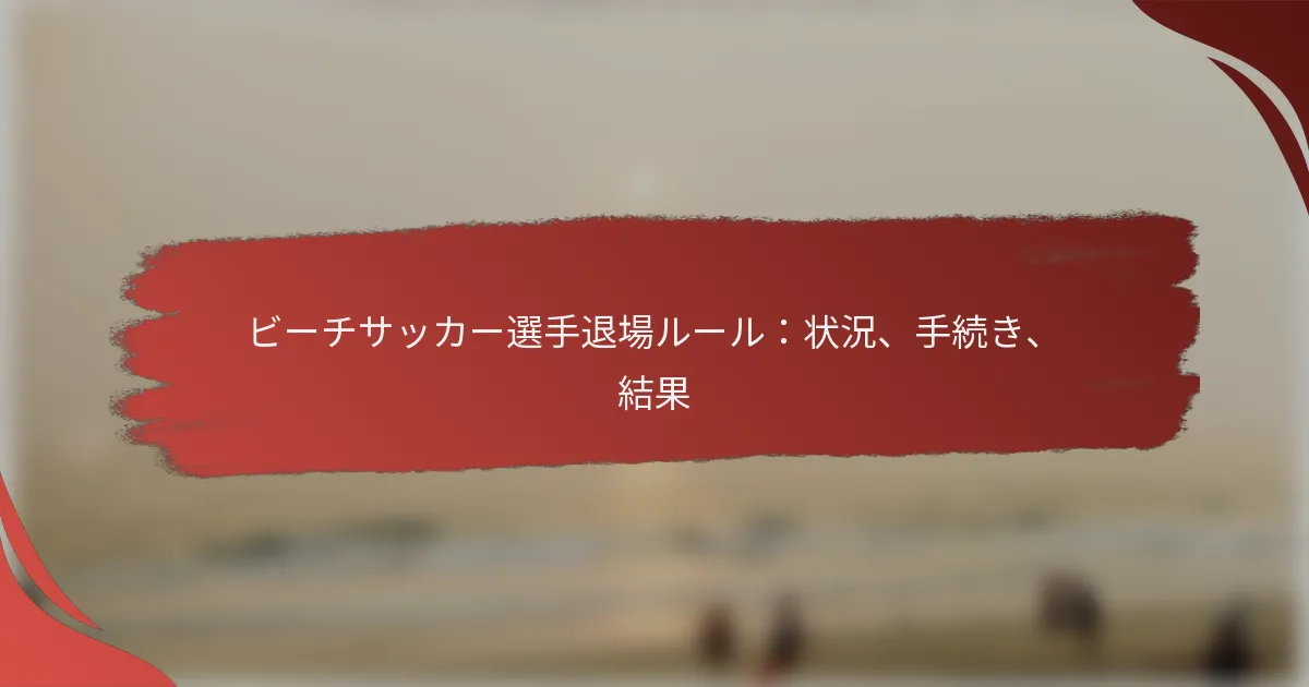 ビーチサッカーにおける選手の退場は、安全性、試合の整合性を損なう違反やルール違反に対する深刻な措置です。退場プロセスは公平性を確保するために構築されており、審判は自らの決定を明確に伝え、事象を記録することが求められます。このような退場は試合の結果に大きな影響を与え、選手やチームにとって重大な結果をもたらすため、選手やコーチはこれらのルールとその影響を理解することが不可欠です。 ビーチサッカーの選手が退場する状況とは? ビーチサッカーの選手は、選手の安全、試合の整合性を脅かすさまざまな深刻な違反により退場させられることがあります。退場は通常、特定の種類のファウル、行動不良、または試合ルールの重大な違反によって発生し、しばしば審判の裁量に委ねられます。 退場につながるファウルの種類 ビーチサッカーで退場につながるファウルには、暴力的な行為、重大なファウルプレイ、過度の力の使用が含まれます。これらの行為は試合の流れを妨げるだけでなく、他の選手の安全にもリスクをもたらします。 たとえば、相手を故意に攻撃したり、無謀にタックルした選手は即座に退場させられる可能性があります。審判はこれらの重要なファウルを認識し、安全なプレー環境を維持するために決定的に行動するよう訓練されています。 身体的なファウルに加えて、唾を吐いたり攻撃的な言葉を使ったりするようなスポーツマンシップに反する行為も退場の原因となり、試合におけるスポーツマンシップの重要性を強調しています。 退場を正当化する行動不良 退場につながる行動不良には、審判に対する攻撃的な議論、無礼なジェスチャー、または相手に対するあらゆる形の嫌がらせが含まれます。これらの行為は審判の権威とフェアプレーの精神を損ないます。 持続的な異議申し立てや対立的な行動をとる選手は退場させられる可能性があり、審判は試合を妨げる行動を抑制することを目指しています。審判に対する尊重を維持することは、スムーズな試合のために重要です。 さらに、他の選手や審判に対する差別的または虐待的な言葉は厳しく禁止されており、即座の退場を招く可能性があり、尊重に満ちたプレー環境の必要性を強調しています。 退場につながる試合ルールの違反 確立された試合ルールの違反も選手の退場を引き起こす可能性があります。たとえば、複数のイエローカードを累積するなどの繰り返しの違反は、レッドカードにつながり、その後の退場を引き起こす可能性があります。 選手はオフサイドやファウルに関連するビーチサッカーの特定のルールを理解しておく必要があります。これらのルールを無視することは、試合に影響を与えるだけでなく、懲戒処分につながる可能性があります。 審判は、試合のペースと公平性を維持するために、故意に試合を遅延させたり、交代ルールに従わなかったりするような重大な違反に対して選手を退場させる権限を持っています。 退場決定に影響を与える文脈的要因 退場決定には文脈的要因が重要な役割を果たします。審判は、試合の激しさ、試合全体の雰囲気、選手に関する過去の事象を考慮して、誰かを退場させるかどうかを判断します。 たとえば、感情が高まる重要な試合では、審判は攻撃的な行動に対してより警戒するかもしれません。逆に、競争が少ない状況では、退場を出す前に裁量を行使することがあります。 天候やフィールドの状態も決定に影響を与える可能性があり、滑りやすい表面は意図しないファウルを引き起こすことがあり、審判は厳しく罰するのではなく見逃すことを選ぶかもしれません。 繰り返しの違反が退場の可能性に与える影響 繰り返しの違反は退場の可能性を高めます。ルールを継続的に違反したり、行動不良を起こしたりする選手は、試合の整合性や選手の安全に対するリスクが大きいと見なされます。審判は試合中の選手の行動を追跡します。 すでにファウルで警告やイエローカードを受けた選手は、その後の違反で退場させられる可能性が高くなります。これは、選手が試合中に規律を維持するための抑止力として機能します。 コーチや選手は、ルールを遵守し、冷静さを保つことの重要性を強調し、不必要な退場を避けるべきです。退場はチームのパフォーマンスや士気に大きな影響を与える可能性があります。 ビーチサッカーの選手を退場させる手続きは? ビーチサッカーの選手を退場させることは、公平性と明確さを確保するための構造化されたプロセスを含みます。審判は、決定を効果的に伝え、将来の参考のために事象を記録するために特定の手順に従う必要があります。 退場時に審判が従うべき手順 退場プロセスは、審判が暴力的な行為や繰り返しのスポーツマンシップに反する行動などの深刻な違反を特定することから始まります。決定が下されると、審判はすべての選手と観客に明確に退場を示す必要があります。 次に、審判は違反を犯